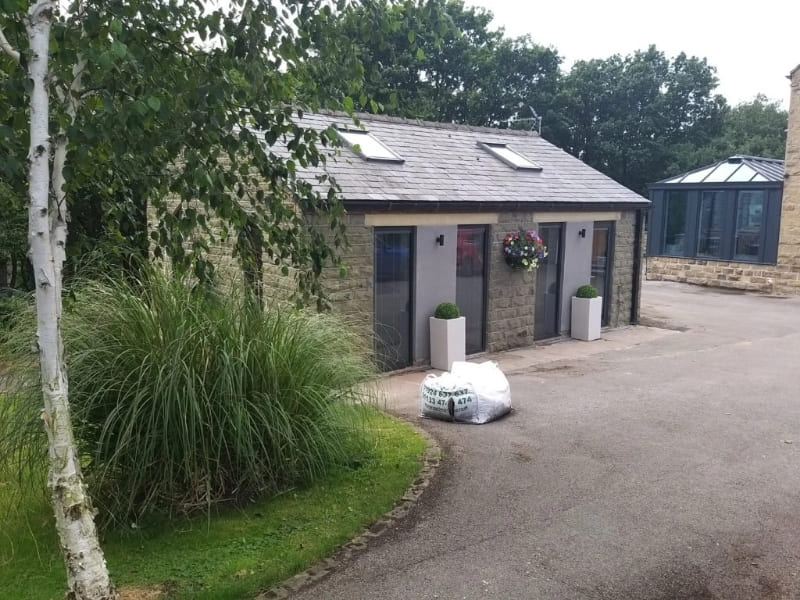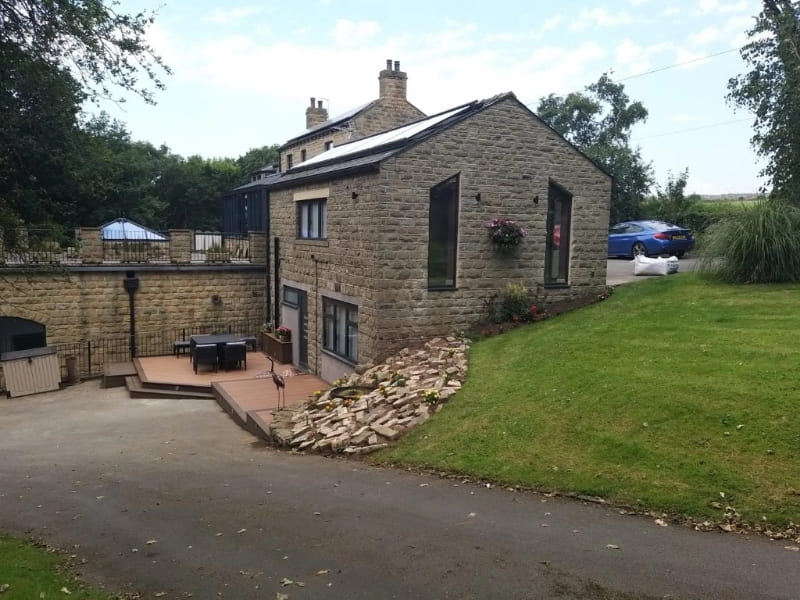 Our client requested the conversion of their garage into a two-bedroom house along with a new car port. The designs were to include an open plan living room dining area in a modern and contemporary style. The client requested that the car port was to include a storage area as well as space for multiple cars. We kept the designs in the local stone to tie in with the other local buildings and create a truly beautiful finish.